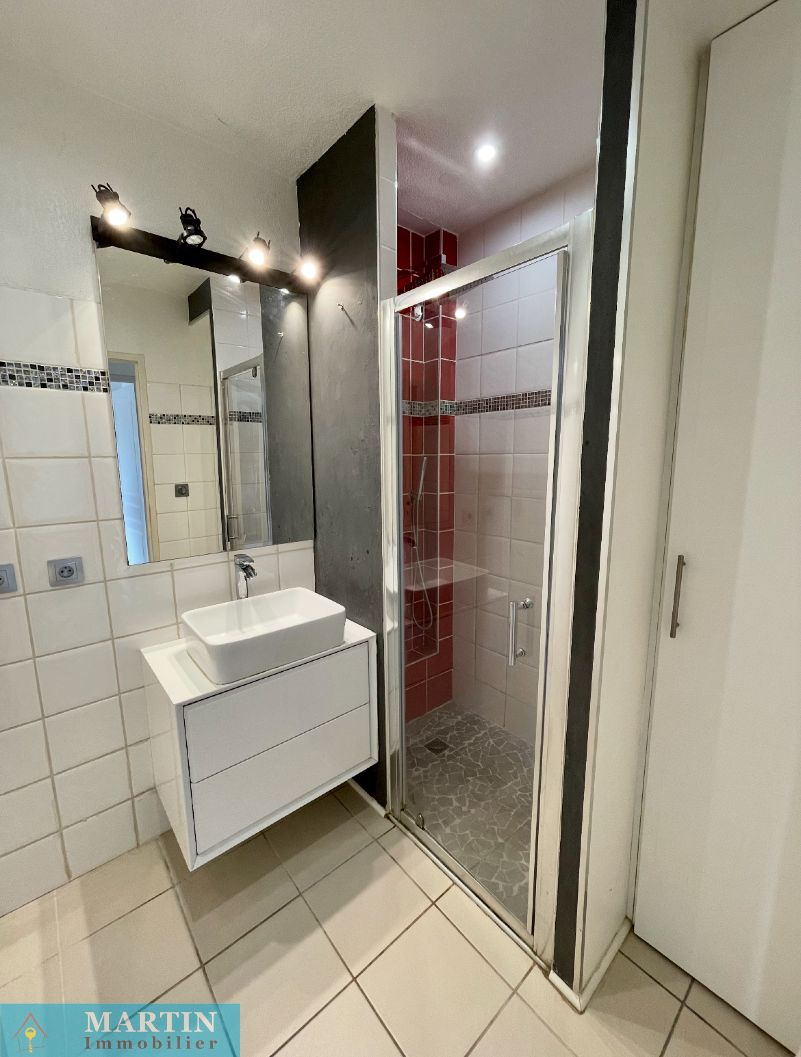 L'espace nuit comprend une chambre avec placard intégré, une salle d'eau moderne, ainsi qu'un WC séparé. L'appartement est équipé d'une climatisation réversible pour un confort optimal en toute saison. Les fenêtres en double vitrage et les volets roulants assurent une bonne isolation et une sécurité renforcée.